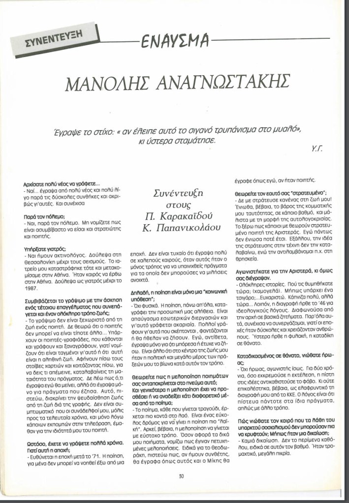 —Μια σπάνια συνέντευξη του Μανόλη Αναγνωστάκη—