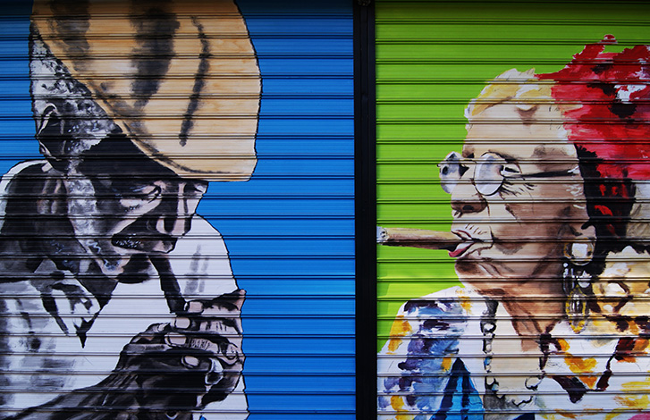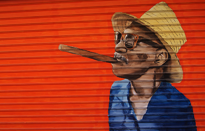 Κατεβασμένα στόρια, κατά τ’ άλλα λαμαρίνες, έγχρωμες με πούρο αλά Κούβα.