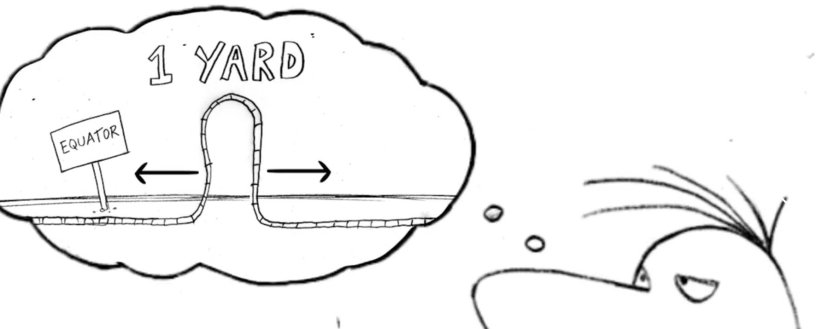 Ας υποθέσουμε ότι η γη είναι απολύτως σφαιρική και ότι ο ισημερινός είναι σε όλο του μήκος στο ύψος της θάλασσας, χωρίς βουνά, λόφους κ.λπ. Ας πούμε τώρα ότι έχουμε τη δυνατότητα να περιζώσουμε τη γη στο επίπεδο του ισημερινού με ένα κορδόνι, έτσι ώστε το κορδόνι να εφάπτεται τέλεια στο έδαφος. Γνωρίζοντας ότι η περιφέρεια της γης είναι (περίπου) 40.075 χιλιόμετρα, θα χρειαστούμε ένα κορδόνι μήκους (περίπου) 40.075 χιλιόμετρα. Ας κόψουμε τώρα το κορδόνι σε ένα οποιοδήποτε σημείο του και ας του προσθέσουμε ένα κομμάτι κορδόνι με μήκος 1 μέτρου. Το κορδόνι που πριν από την προσθήκη του 1 μέτρου ήταν σφιχτά δεμένο γύρω από τη γη, τώρα θα χαλαρώσει, οσοδήποτε λίγο· σωστά; Σωστά. Ας υποθέσουμε, τέλος, ότι έχουμε τη δυνατότητα να ταχτοποιήσουμε το χαλαρωμένο πλέον κορδόνι, έτσι ώστε να απέχει από το έδαφος ακριβώς το ίδιο ύψος καθ’ όλο το μήκος των 40.075 χιλιομέτρων του ισημερινού. Το ερώτημα που τίθεται είναι το εξής: Τι πιστεύετε ότι χωράει να περάσει κάτω από το κορδόνι: μια γάτα, ένα ποντίκι ή ένα λεπτό φύλλο χαρτιού;